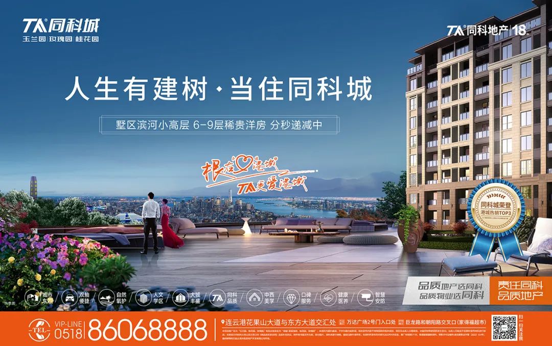 免责:本项目推广名为“同科城”,地名办核准名为“卓越蔚蓝海岸””桂花园“”玫瑰园“;开发公司为连云港天乾房地产开发有限公司,预售证为:连住建售证字第(2019)140号(换证)、141号(换证)、142号(换证),本资料为要约邀请,不作为要约或承诺。相关宣传内容不排除因政府相关规划、规定、出卖人分期规划、未能控制等原因而发生变化;出卖人可能不定期对宣传材料进行修改;买卖双方的权利及义务以双方签订的《商品房买卖合同》及补充协议、附件等书面文件为准,本资料所发布内容为2022年4月信息,推广有效期6个月,敬请留意最新资料,最终解释权归连云港天乾房地产开发有限公司所有。